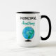 Watercolor Globe Personalised School Principal Cofee Mug. A watercolor blue and green world globe for the worldly principal. Personalised with principals name in green script. The design is on both sides of the mug. A practical and fun personalised gift for an elementary, middle school or high school principal. www.SamAnnDesigns.com