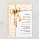 Invite your guests to a chic and sophisticated celebration with our Watercolor Gold Baby Shower Invitation. Featuring a beautiful gold watercolor bow tied with a soft ribbon and scattered golden dots, this design exudes a modern and elegant feel. The delicate script typography and minimalistic layout make this invitation perfect for those seeking a coquette, modern, and elegant baby shower theme.