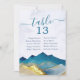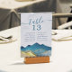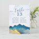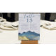 Modern Vintage Elegant Wedding Table Numbers Cards Template - Blue Green and Faux Gold Foil Watercolor Mountains Landscapes Scenery.