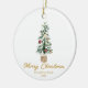 If you are looking for a simple minimalist beautiful and easy editable Christmas ornament. This one is perfect for you. And as you see the design features a watercolor hand made and drawn Christmas tree with ornaments decoration in red and gold . With gold typography of MERRY CHRISTMAS. And your family name and year under it.