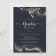 This watercolor gold splash gender reveal party invitation is perfect for a rustic baby gender reveal. The design features hand-painted gold splash in a dark blue background.