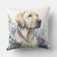 Watercolor Golden Labrador Retriever and Flowers Cushion