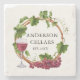 Watercolor Grape Vines Wreath Name Wine Cellar Stone Coaster