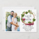 Modern Elegant Watercolor Grapes and Vines Wood Wreath Save The Date Wedding Announcement Card - Couple Engagement Photo