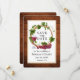 Modern Elegant Watercolor Grapes and Vines Wood Wreath Save The Date Wedding Announcement Card - Rustic Country Wood Background with Gold Frame.
