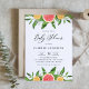 Invite family and friends to your event with this customisable citrus baby shower invitation. It features watercolor illustrations of grapefruits, clementines, floral blossoms and greenery. This citrus invitation will be perfect for citrus theme and summer baby showers. Personalise by adding your event details.