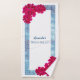 Greece's inspired exquisite Bride Squad Bath Towel perfectly blends classic Greek design and modern romance. Featuring a stunning navy blue frame adorned with Greek fretwork patterns, the Towel exudes the timeless charm of the Mediterranean. Adding a touch of vibrant contrast, the design is elevated with the beautiful, intensely pink flowers reminiscent of the lush Mediterranean gardens.