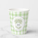 Watercolor Green and White Hydrangea Crest Gingham Paper Cups