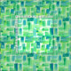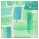 A pretty green fabric featuring an abstract brick pattern in several shades of green and blue watercolor with spatter and paint spots for effect. Nice unique fabric for garments, crafts, or home decor!