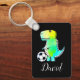 Watercolor Green Dinosaur With Custom Name Key Ring
