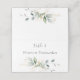 Elegant foldeed place card featuring an illustration of green and gold foliage in watercolor style. You can change the table number to your requirements (2, 5...7...10...) - each time a new card, and add all these cards to your cart.