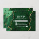 Modern Elegant Watercolor Emerald Green and Gold Marble Agate Geode Wedding RSVP Card