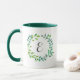 Watercolor Green Leaf Wreath | Monogram Mug