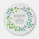 Watercolor Green Leaf Wreath | Wedding Magnet