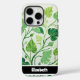 This premium mobile device protector showcases a serene, watercolor botanical design. It features delicate green leaves and slender branches in various transparent washes of green, beautifully painted on a clean white background, creating a fresh and airy natural appearance. The soft, fluid brushstrokes give it a gentle artistic charm. At the bottom, a sleek black band displays the name "Elizabeth" in crisp white; you can easily remove the name and any other elements you don't like from within the design tool, crafting your perfect bespoke mobile phone protector.
