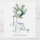 This gorgeous green typography Christmas party wine label features a beautiful watercolor of a holiday ornament and pine leaves above elegant handwritten script reading Happy Holidays. These modern holiday gift labels are a trendy and chic choice for a classy family.