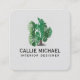 Watercolor Green Plant Square Business Card
