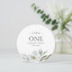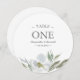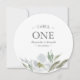 Elegant watercolor botanical table number card in a unique round format frames your details with a border of grey watercolor leaves and florals in pale, cool shades of greys and greens. The font is set in modern sans serif and script typography. Perfect for spring, summer, fall autumn, rustic or garden theme weddings. To see more designs like this visit VG Invites at www.zazzle.com/vginvites