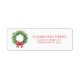 These personalised Christmas holiday return address labels feature a green wreath with red gingham bow. Personalise with your choice of special text.