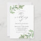 Watercolor Greenery and White Flowers Wedding Invitation | Invite family and friends to your wedding with this beautiful customisable watercolor greenery invitation. It features watercolor illustrations green foliage and white flowers, an elegant grey script and a matching botanical pattern. This white floral invitation is perfect for spring, garden and winter weddings.