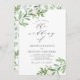 Watercolor Greenery and White Flowers Grey Wedding Invitation