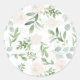 Watercolor Greenery and White Flowers Pattern Classic Round Sticker