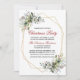 Elegant Watercolor Greenery Christmas Party Invitation includes beautiful watercolor botanical greenery, eucalyptus leaves, holly berries and other beautiful foliage. Gold Geometric Frame. Red Script.