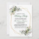 Elegant Watercolor Greenery Holiday Party Invitation includes beautiful watercolor botanical greenery, eucalyptus leaves, holly berries and other beautiful foliage. Gold Geometric Frame.