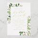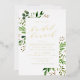 Our Watercolor Greenery bridal brunch invitation displays your bridal brunch details in gold foil lettering surrounded by a watercolor foliage frame in vibrant shades of spring and moss green. The stylish botanical bridal shower invites are perfect for spring and summer.
