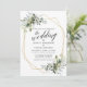 Modern Calligraphy Script Elegant Watercolor Botanical Greenery Wedding Invitation Card includes eucalyptus leaves, green botanical foliage, dusty blue leaves and other beautiful botanical greenery. Gold Geometric Frame, Sage Green Back