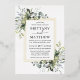 Modern Elegant Greenery Wedding Invitation includes botanical greenery, eucalyptus leaves and dusty blue leaves. Dusty Blue Back. Two Frames - Double Frame - Gold Foil
