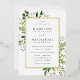 Elegant botanical wedding invitations featuring your wedding details framed in gold foil and painted watercolor foliage in vibrant shades of spring and moss green. The back of the greenery and gold foil wedding invitations features a solid green background. Designed to coordinate with our Watercolor Greenery wedding collection.