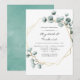 Trendy sage green and white watercolor leaves rehearsal dinner invitation with gold geometric frame.