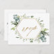 This wedding rsvp postcard features painted watercolor eucalyptus, green leaves, flowers with a faux gold geometric hexagon frame. For more advanced customisation of this design, please click the "Customise further" link. Matching items are also available.