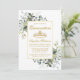 Modern Elegant Watercolor Botanical Greenery Wedding Quinceañera Invitation Card includes eucalyptus leaves, green botanical foliage, dusty blue leaves and other beautiful botanical greenery. Gold Frame. Sage Green Back.