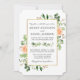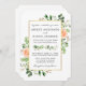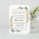 Modern Elegant Watercolor Eucalyptus Greenery Peach Roses Gold Frame Wedding Invitation