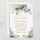 Modern Elegant Watercolor Botanical Greenery Wedding Invitation Card includes eucalyptus leaves, green botanical foliage, dusty blue leaves and other beautiful botanical greenery. Gold Script, Photo Back