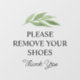 Kindly remind your guests to remove their shoes with this custom window cling decal. This elegant window decal features a watercolor greenery leaf branch and modern calligraphy script font.