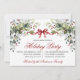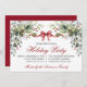 Watercolor Greenery Red Bow Holiday Party Invitation