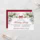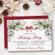Modern Elegant Watercolor Winter Botanical Greenery and Holly Berries Christmas Holiday Party Invitation - Calligraphy Script and Red Ribbon Bow