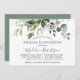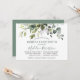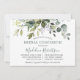 Modern Elegant Watercolor Botanical Greenery Bridal Shower Luncheon Invitation Card includes eucalyptus leaves, green botanical foliage, dusty blue leaves and other beautiful botanical greenery. Trendy Calligraphy Script. Sage Green Back.