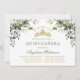 Watercolor Greenery Sage Green Gold Quinceanera Invitation