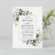 Modern Elegant Greenery Wedding Invitation includes botanical greenery, eucalyptus leaves and dusty blue leaves. Dusty Blue Back. Gold Foil Frame.