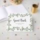 This lovely minimal wedding guest book features simple, watercolor green leaves on a clean, white background. Modern serif text mixed with trendy script typography adds a fresh look to make this guestbook perfect for rustic, minimalist, or any elegant botanical outdoors wedding.