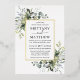 Modern Elegant Greenery Wedding Invitation includes botanical greenery, eucalyptus leaves and dusty blue leaves. Sage Green Back. Gold Foil Frame.
