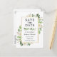 Watercolor Greenery White Floral Save The Date Postcard