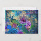 Vintage Watercolor Peacock & blue and purple Flowers design with a grunge blue and yellow textured background and gold diamonds