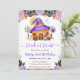 Framed with elegant purple florals and delicate gold accents, the design blends cosy autumn warmth with playful Halloween fantasy. The soft watercolor textures and storybook style give it a gentle, child-friendly feel—perfect for a festive birthday celebration with costumes, candy, and magical woodland vibes. This artwork captures the spirit of Halloween in a sweet and whimsical way that feels both enchanting and memorable.