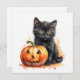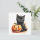 Watercolor Halloween Black Cat with Pumpkin Holiday Card