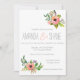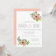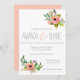 Whimsical floral hand painted wedding invitation, or bridal shower invitation. Peach ampersand. Hipster, country, shabby chic.